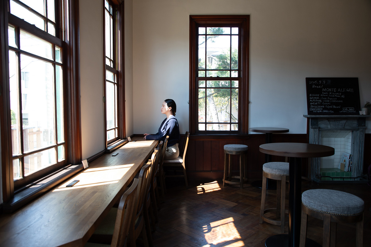 洋館の中は、さきほどそばを食べた日本家屋とはうって変わった雰囲気です。個性的な窓枠から差し込む自然光が心地いい。取材時は朝でしたが、時間や天気によっても光の感じが変わります。いろいろな景色を見に、また訪れたいですね。