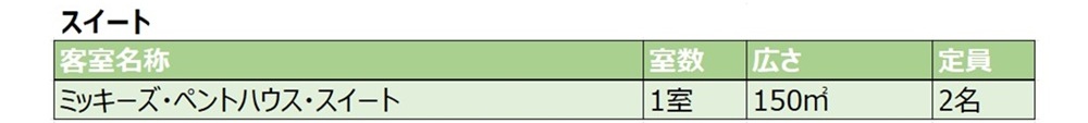 キャラクターカテゴリーとスタンダードカテゴリーの特徴を併せ持った、最上級の客室。150 ㎡の広々とした室内にはディズニーを代表するキャラクターであるミッキーマウスをイメージしたカラーやデザインがあしらわれ、朝食ほか各種特典など、スイートならではのサービスも充実!