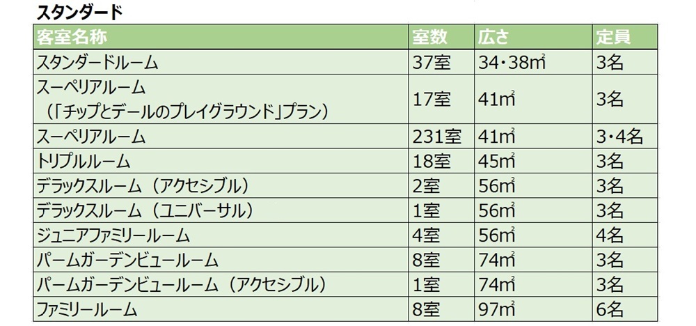 ディズニーアンバサダーホテルでは、「ミッキーマウスルーム(魔法使いの弟子)」での宿泊が始まる2025年10月13日(月)より、全503室の客室に「キャラクター」、「スタンダード」、「スイート」の3つの新しい客室カテゴリーを導入。それぞれの特徴をご紹介します。