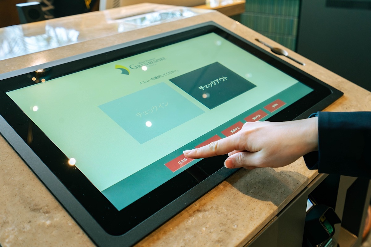チェックイン・チェックアウトはすべてセルフカウンター式。ホテルスタッフが常駐しているので、やり方がわからなければすぐに尋ねられて安心です。