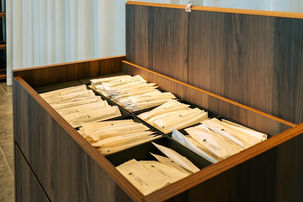 飲み放題のソフトドリンクサービスもあり。コーヒー・紅茶・ほうじ茶・抹茶・カフェラテなど、種類が豊富なのはうれしいですね。ライブラリーの本を持ち込んで読書をしながら、何時間でもくつろいでいたいです。