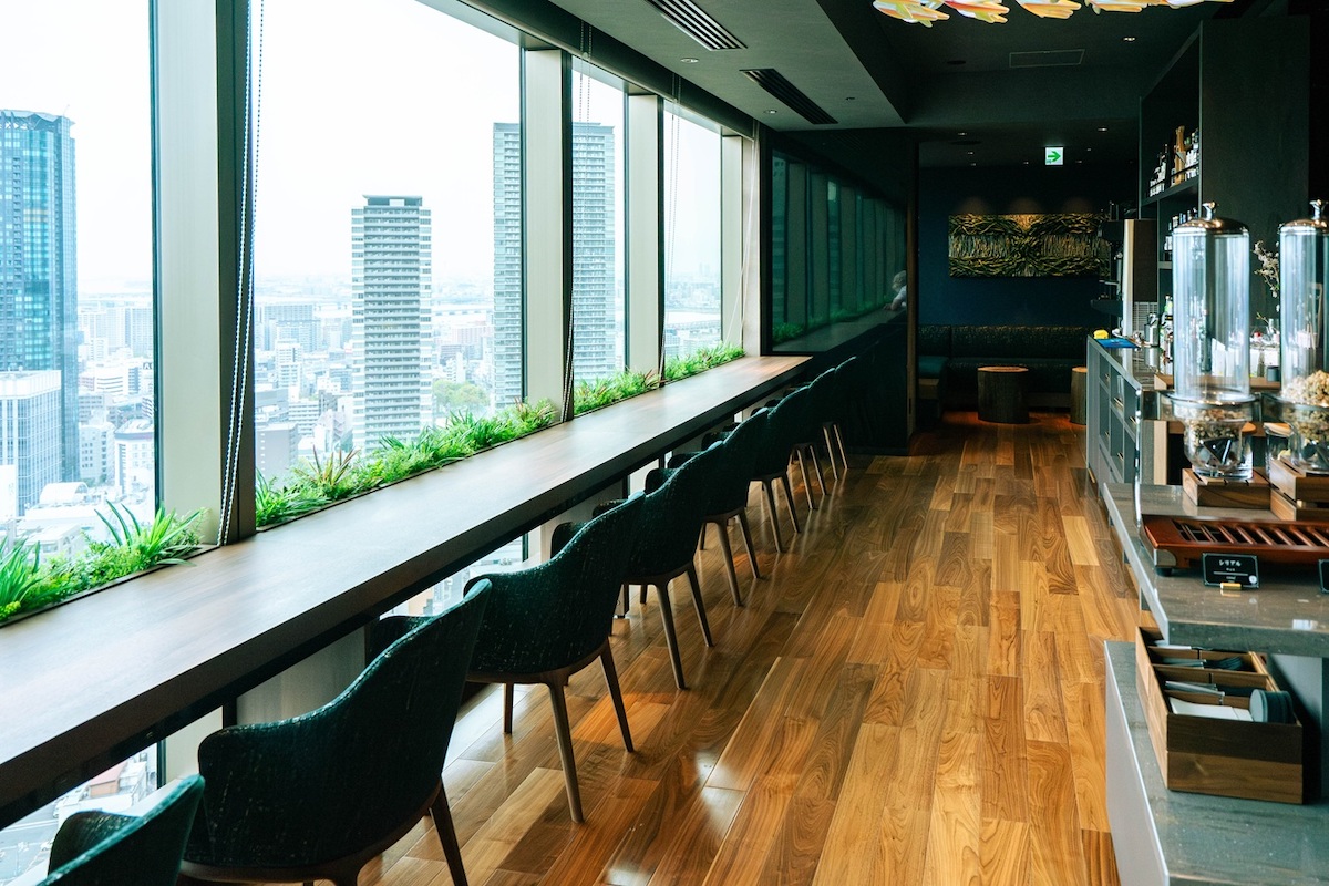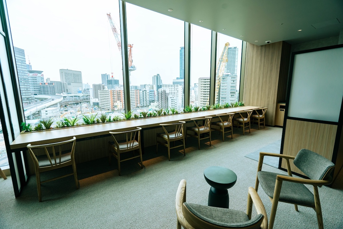 8時から22時まで、すべての宿泊者が使用できるラウンジが6階にあります。チェックイン前から利用できるため、早く到着したときには大阪の景色を眺めながらゆったり過ごせるのがありがたい。