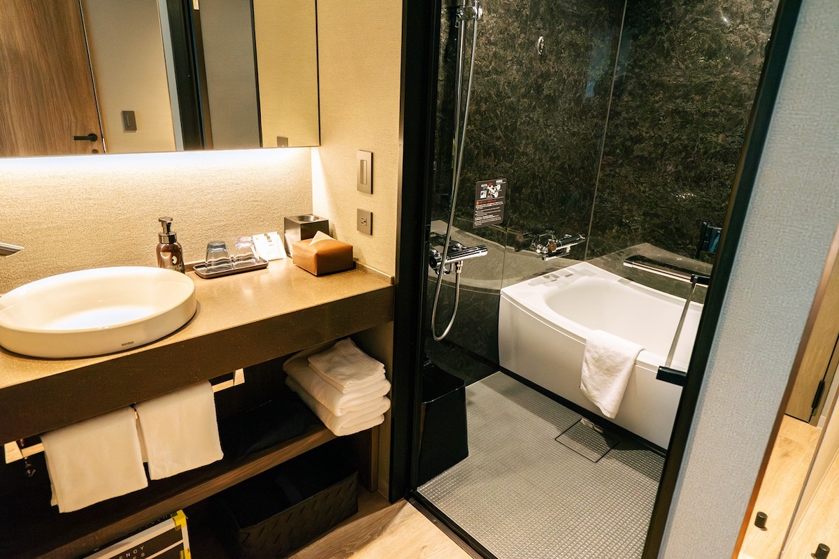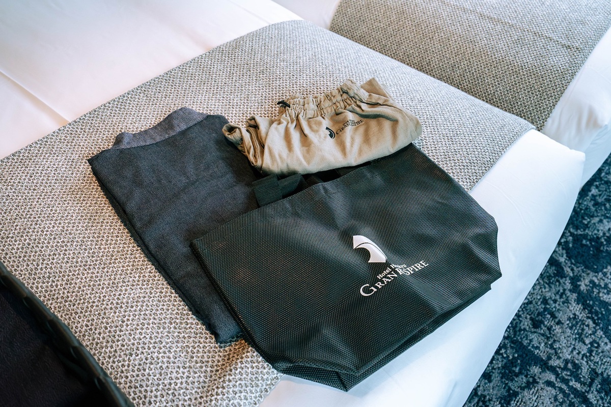 クラブフロア・スタンダードフロアともにセパレートタイプのオリジナルナイトウェアが用意されています。ホテル客室から宿泊者専用エレベーターで直接行き来できる健康増進施設「うめきた温泉 蓮」へは、このナイトウェア姿とルームスリッパでアクセス可能。着替えの手間なくラフに行けるのはとっても楽ちんです。なお、クラブフロアの宿泊者は滞在中1泊につき1回入館でき、スタンダードフロアの宿泊者はフロントでチケットを購入できるのも便利。