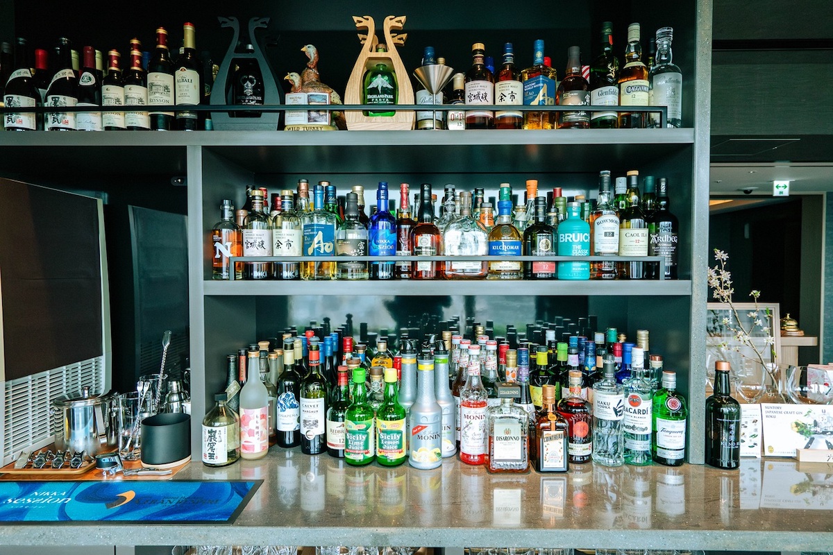 UCCのラグジュアリーブランド「Largo(らるご)」のコーヒーや、日本茶、紅茶などのソフトドリンクに加え、約70種類のリキュールやウイスキーなどアルコール類もずらり! 自分で自由にカクテルを作って楽しめるとあって、お酒好きにはたまらない場所です。