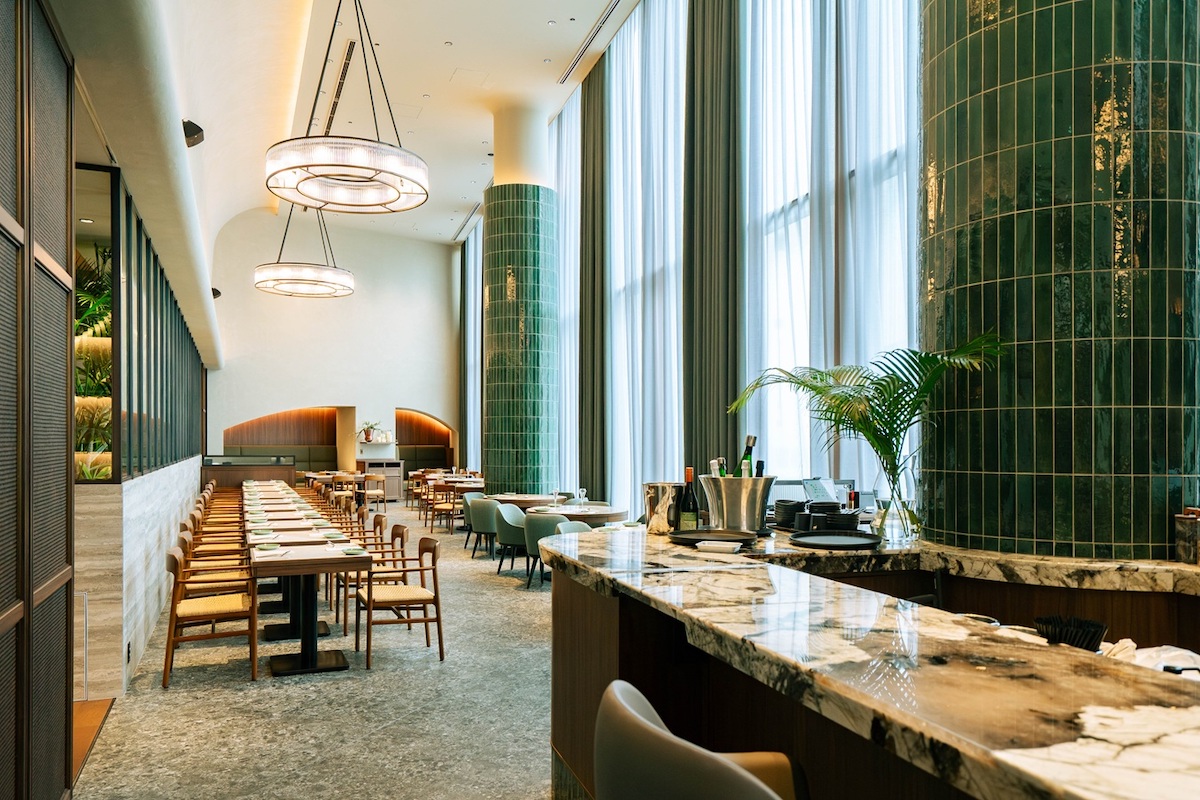 朝食を提供するオールデイダイニング「MAISON VERTE(めぞん ゔぇるて)」。東京の人気フレンチレストラン「L’AS(らす)」の新業態としてオーナーシェフ・兼子大輔氏がメニュー監修を手がけています。朝から天井の高い開放的な空間で食事を楽しめるのはとっても心地よいです。