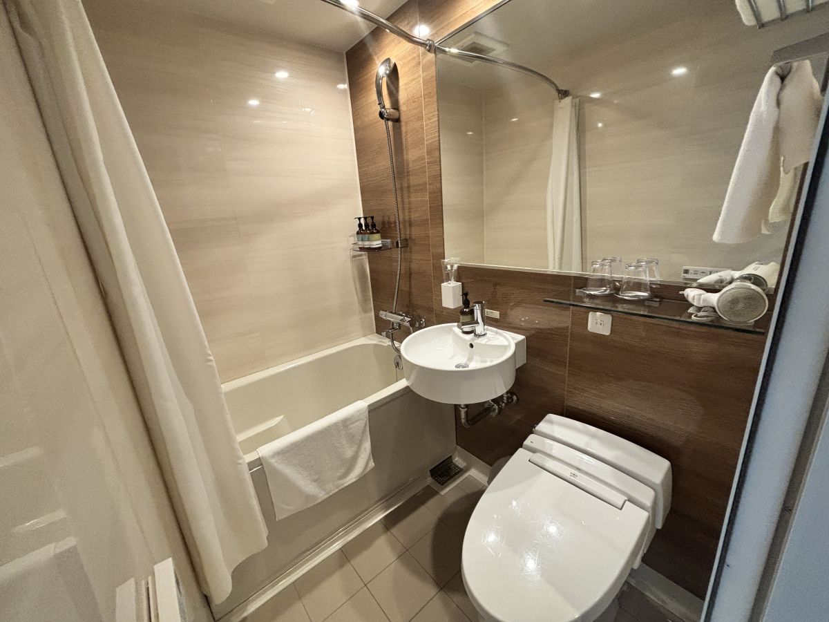 客室のお風呂はユニットバスタイプ。ブラウン×ホワイトで統一され、高級感がある落ち着いた雰囲気です。