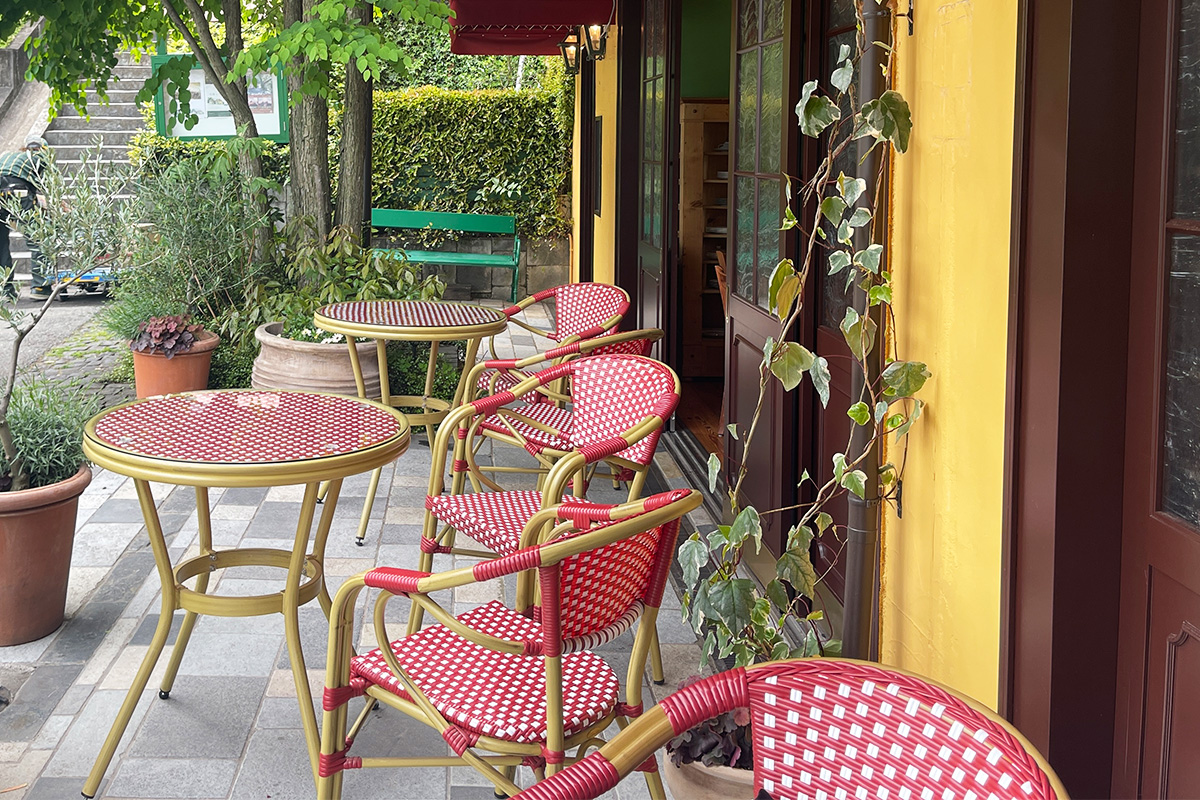 お店は、ヨーロッパで幸せの象徴とされるイエローの外壁が目印。東京にいながら、ヨーロッパの街の一角を訪れたような気分が味わえます。