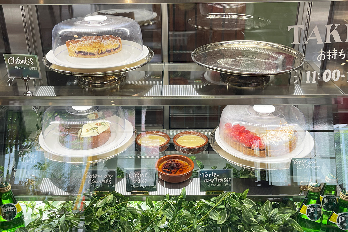 スイーツは、ほかにも「レモンのタルト」850円、「ザッハトルテ」900円、「クリームブリュレ」770円、「バニラアイスクリーム」660円などのメニューも(スイーツの種類は営業日や時間帯によって異なります)。ケーキや焼き菓子は、ランチタイム営業中はお持ち帰りすることもできます。