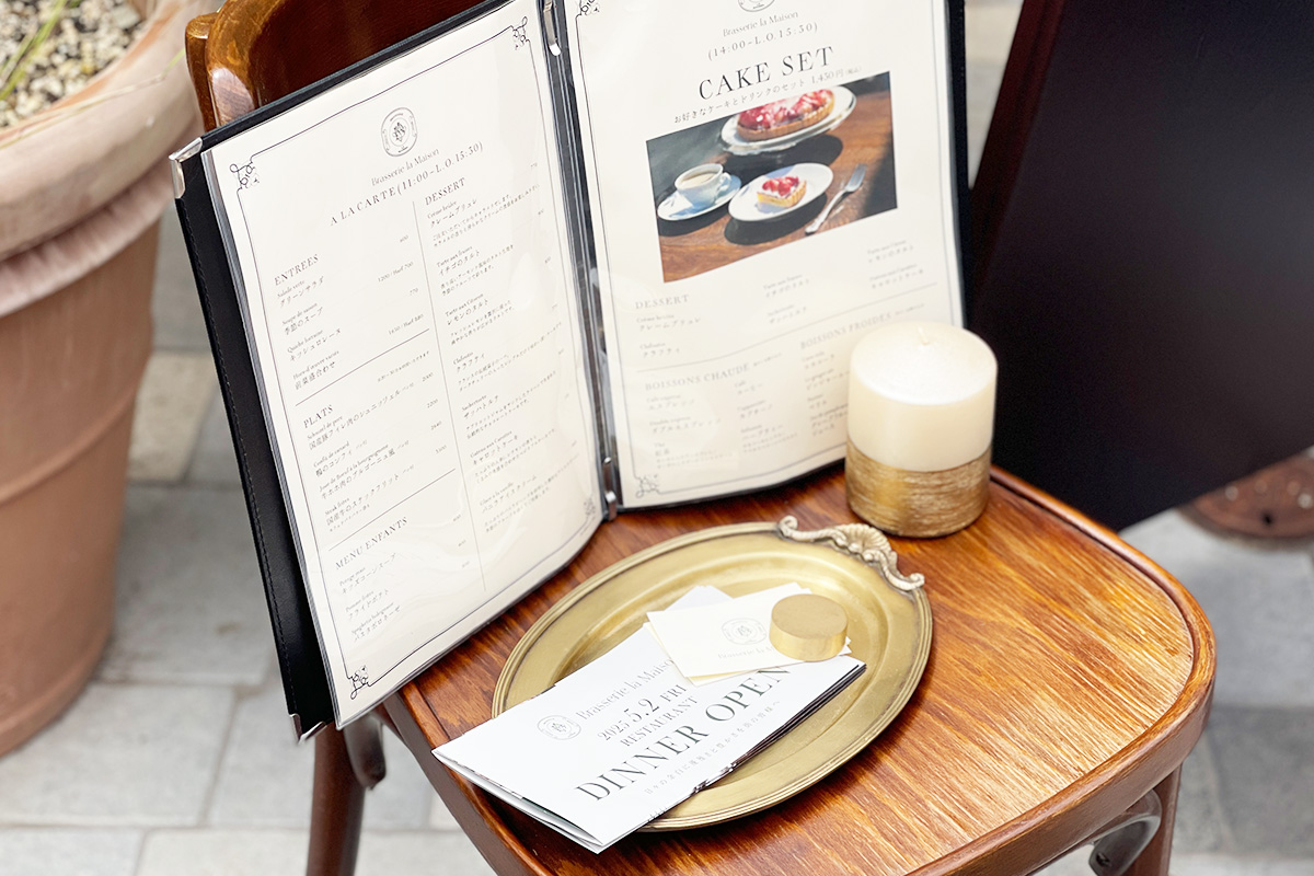 カフェとして先行営業していたため、スイーツメニューのイメージがある「Brasserie la Maison」ですが、本格的な料理も楽しめます。
