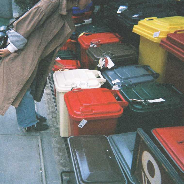 カラフルなゴミ箱に、セール品の和食器。自由が丘はそこかしこで、和洋折衷に溢れているのかもしれません。