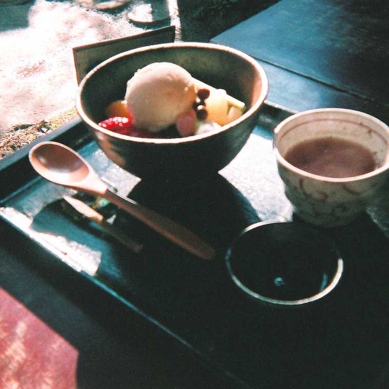 先ほどまでのヨーロッパ気分から、ガラリと変わった景色。あんこたっぷりのあんみつも絶品で、思わず「さいこう!」と声が出ました。
