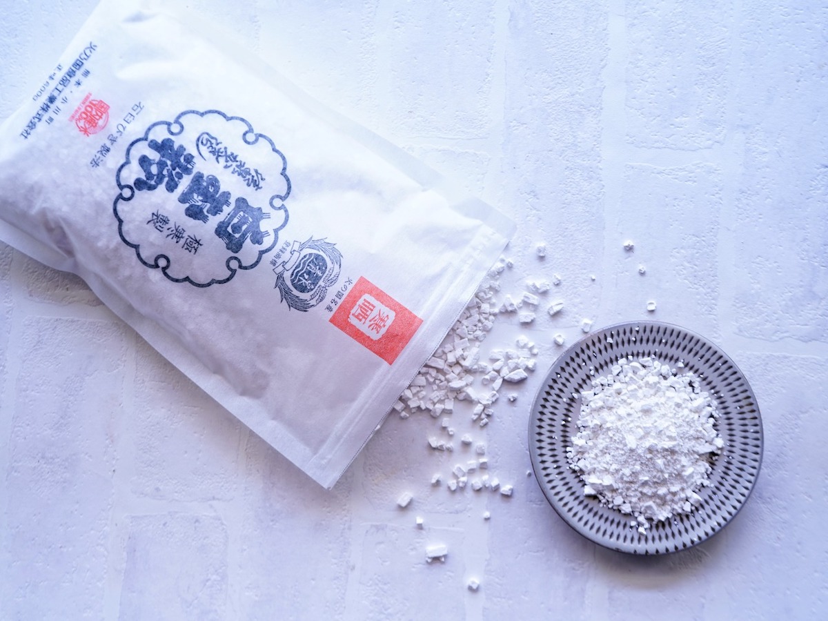 白玉粉を使うたびに、もっとさらさらの粉だと使い勝手がいいのに…と思っていたのですが、脱水した固形物を賽の目に切って乾燥させて作られるので、どうしても細かな塊が残るとのこと。空気と接触する部分が限られるため、白玉粉の品質をより長く保つ効果もあるそうで、この形状も納得!