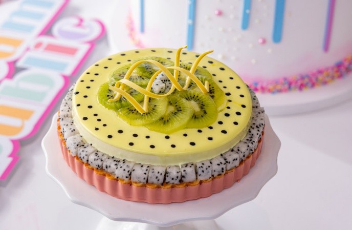 サクサクのタルト生地にさっぱりとしたキウイとヨーグルトのムースを組み合わせ。パッションフルーツ風味のガナッシュがさらにさわやかさをプラスしています。