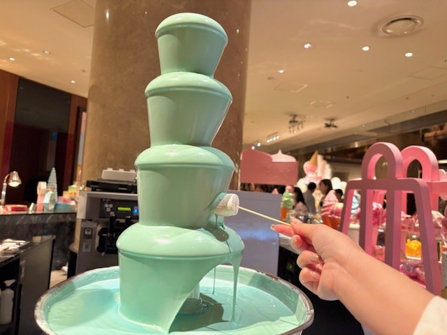 さらに店内の中央には珍しい水色のチョコレートフォンデュも!