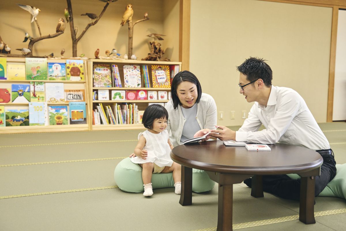 さらに小さな子ども連れでもゆっくり過ごせる新ラウンジ「森のラウンジ 」も同時オープン。昔懐かしいコマやとんとん相撲などの昔遊びのコーナー、多機能クッションにもたれながら読書ができる本棚コーナーがあり、ドリンクやお菓子を提供してもらえますよ!