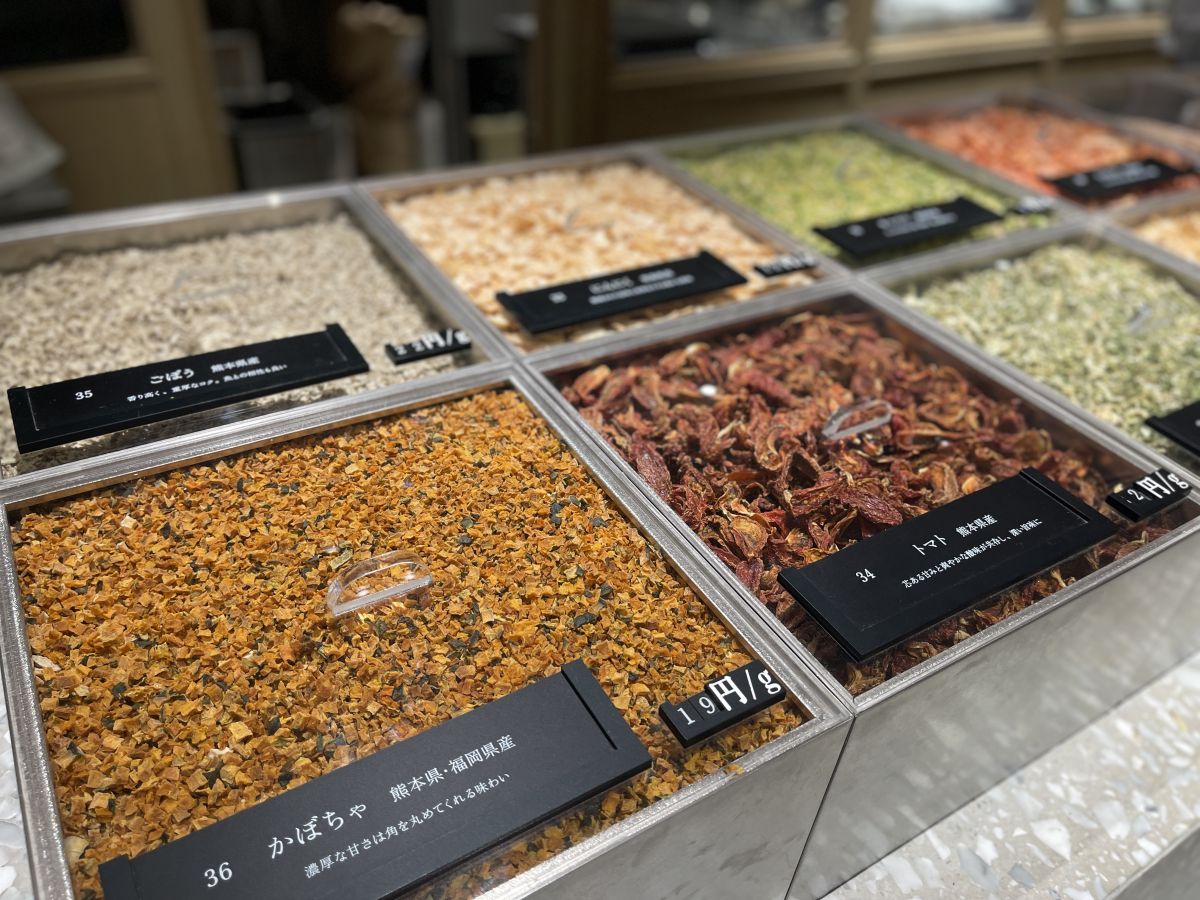 「だし尾粂 麻布台ヒルズ店」で今話題になっているのが「オーダーメイドだしパック」です。自由にセレクトしただし原料を店内で配合→粉砕→充填→包装するという世界初のサービスで、特許も取得しているのだとか。