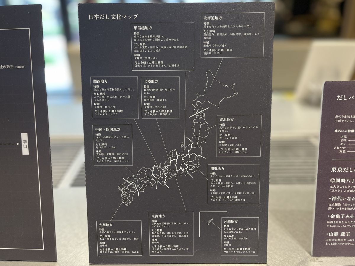 「かつお荒節」の力強い味わいが特徴的で日常使いしやすいの「基本だし」に、「かつお本枯節」や「羅臼昆布」などワンランク上の原料でまろやかな味わいを引き出した「特上だし」、東京特有のだし文化から着想を得て「宗田かつお節」や「さば節」など魚の風味をたっぷり出した「東京だし」などそれぞれ風味が異なるので、試飲しながら自分の好みを把握しましょう。