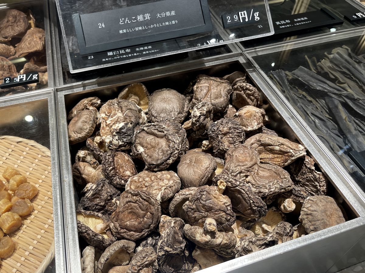店内にずらり並んでいるのは、36種類のだし原料。創業150年以上の歴史で培った目利きで、国産&無添加のものを取り揃えています。