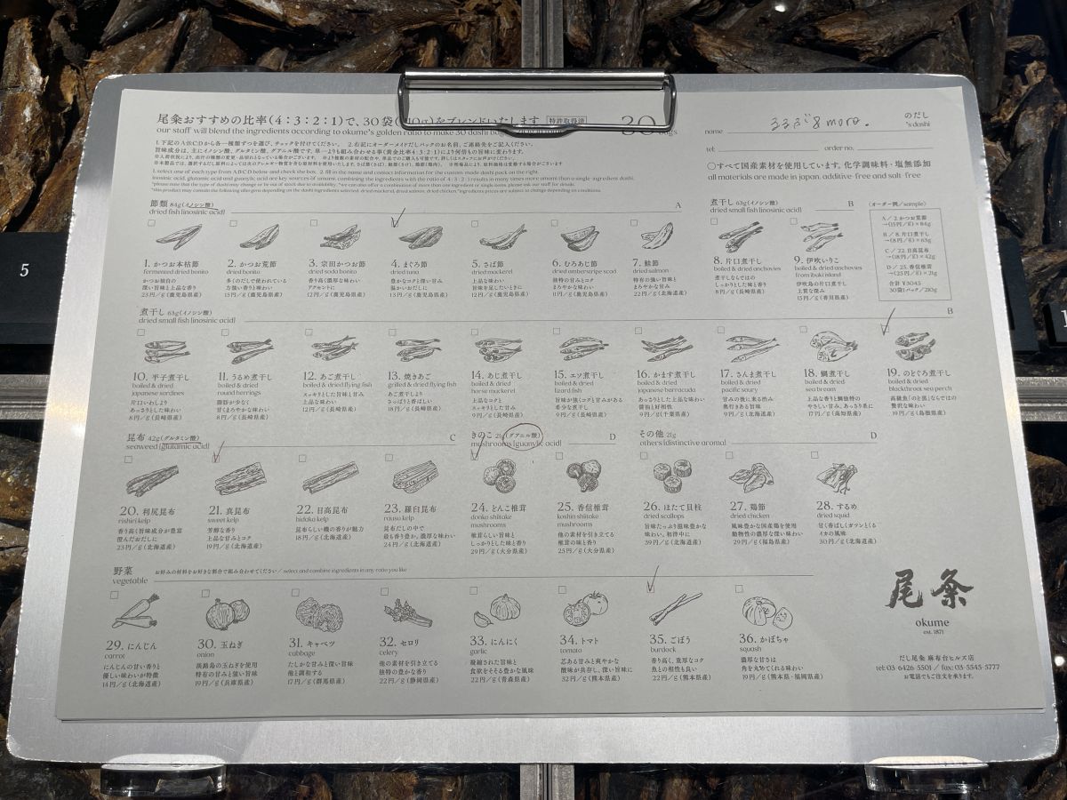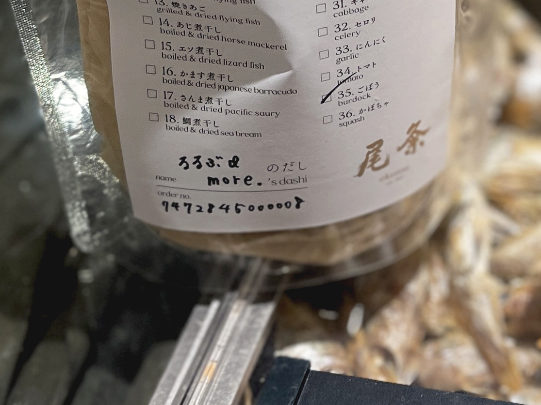 パックに記載されているオーダー番号を伝えれば、次回以降お店を訪れた際に同じ配合のだしを購入することができるのもうれしいポイント! 気に入ってリピ買いする人が多いのだとか。