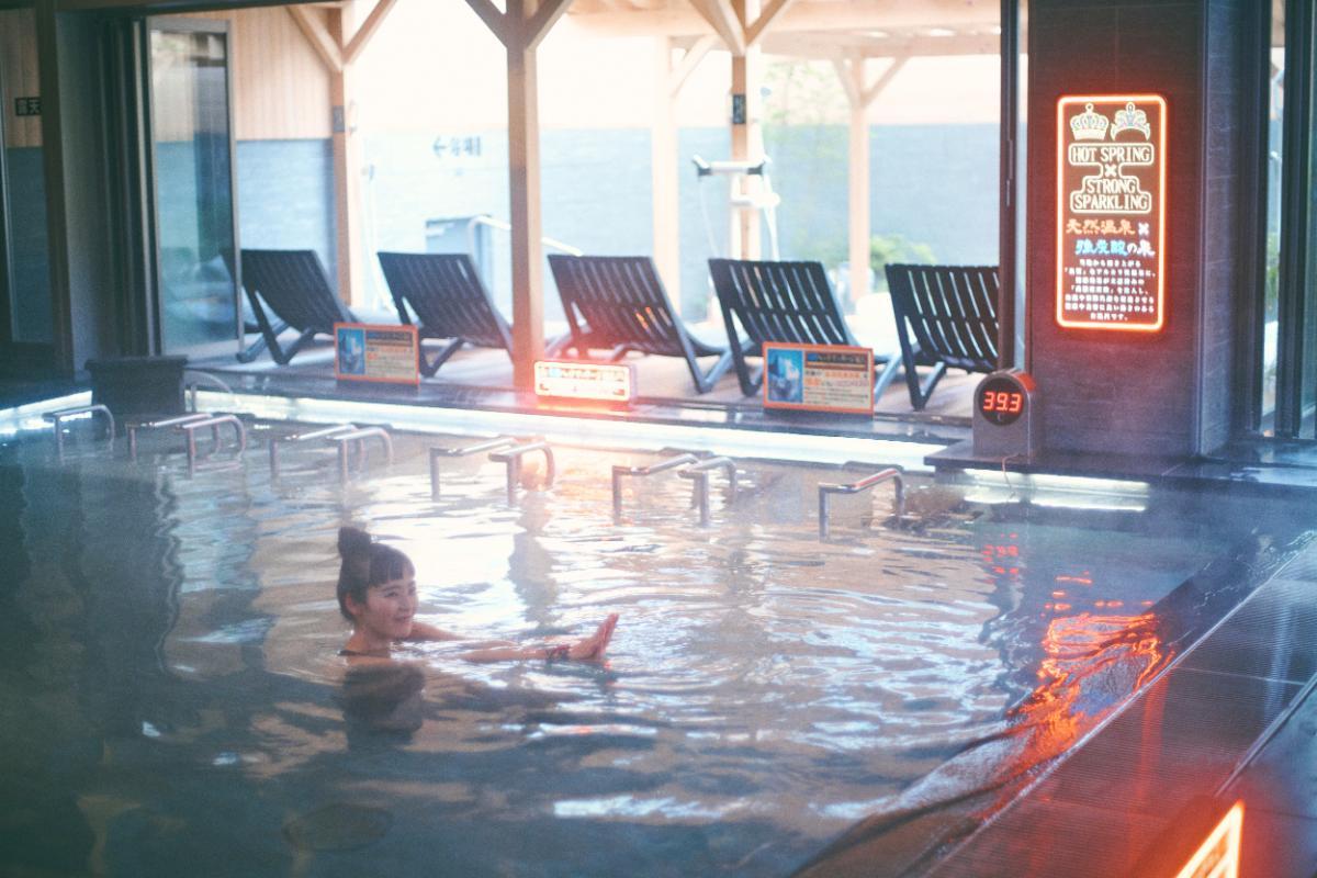 内風呂にある一番大きなお風呂が「天然温泉×強炭酸泉」というコラボレーション。炭酸泉好きにはたまらない状況が初っ端からありました。
