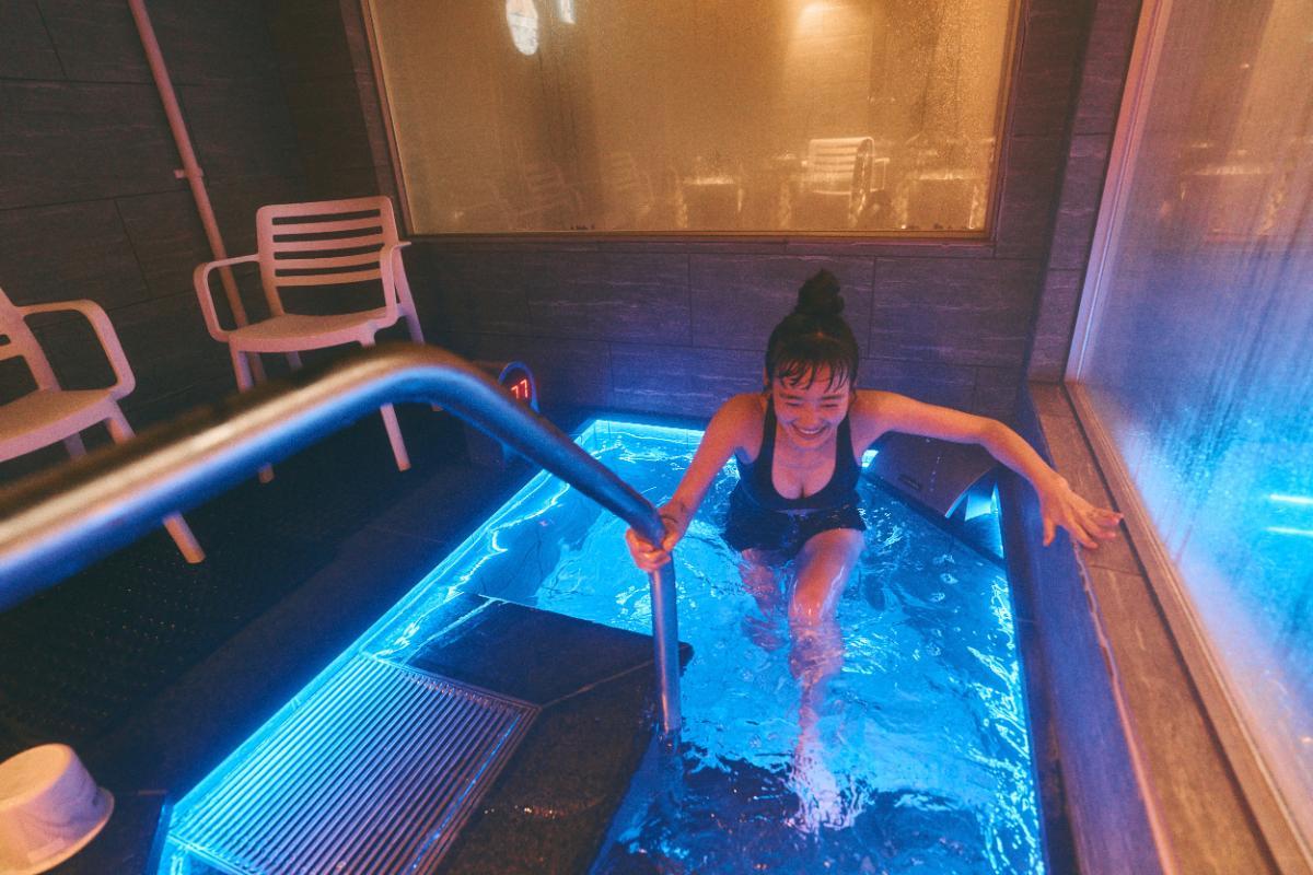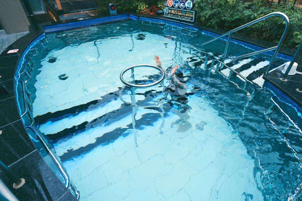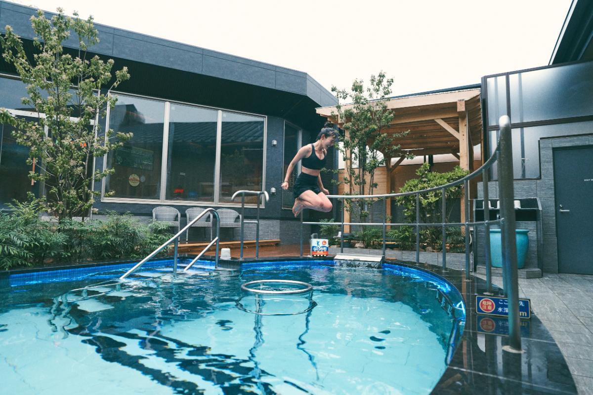 「遊 水風呂」は、潜れて、泳げて、飛び込める、最強の三段活用水風呂です。