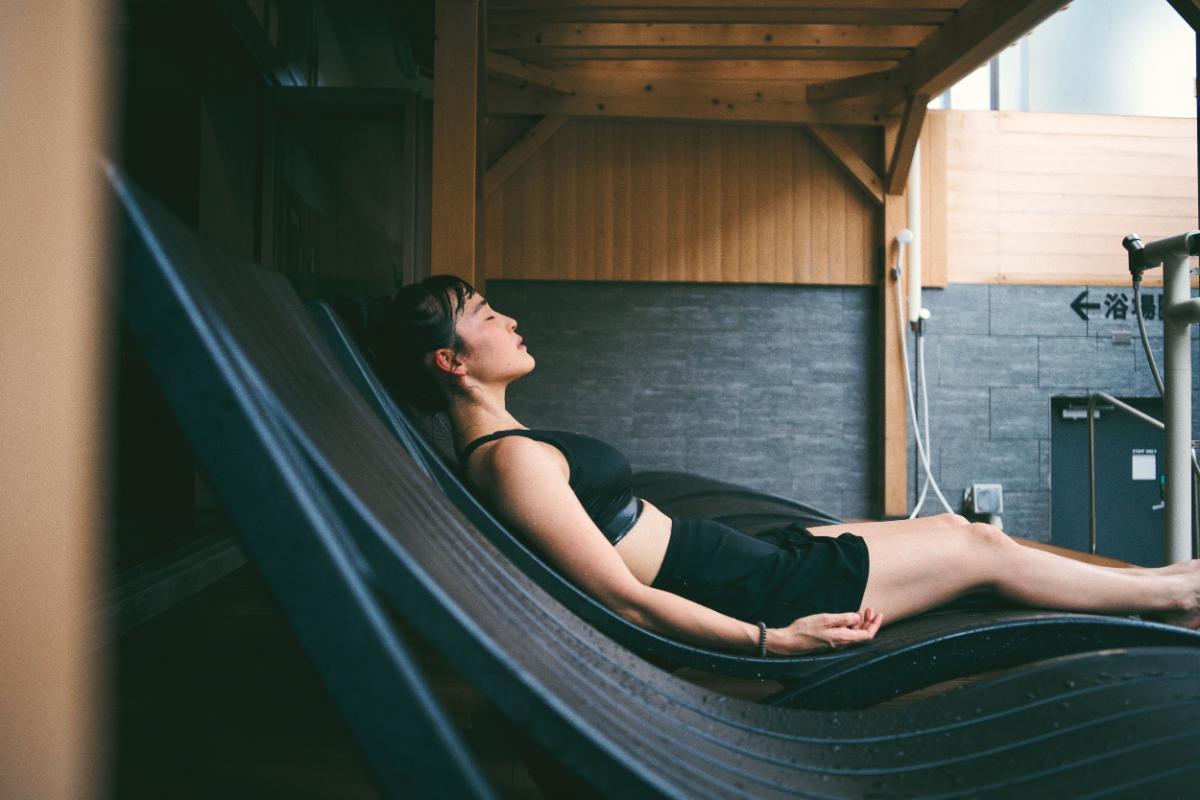 絶妙なカーブのととのい椅子に体をあずけて、ととのいへと、行ってきます。