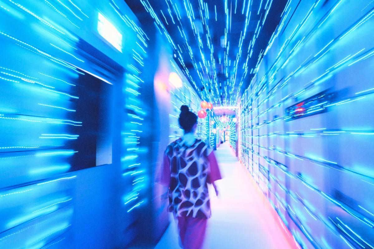 館内着に着替えて(わたしはキリン)、次のエリアへ移動。の道が、写真で撮るとほぼ宇宙になりました。
