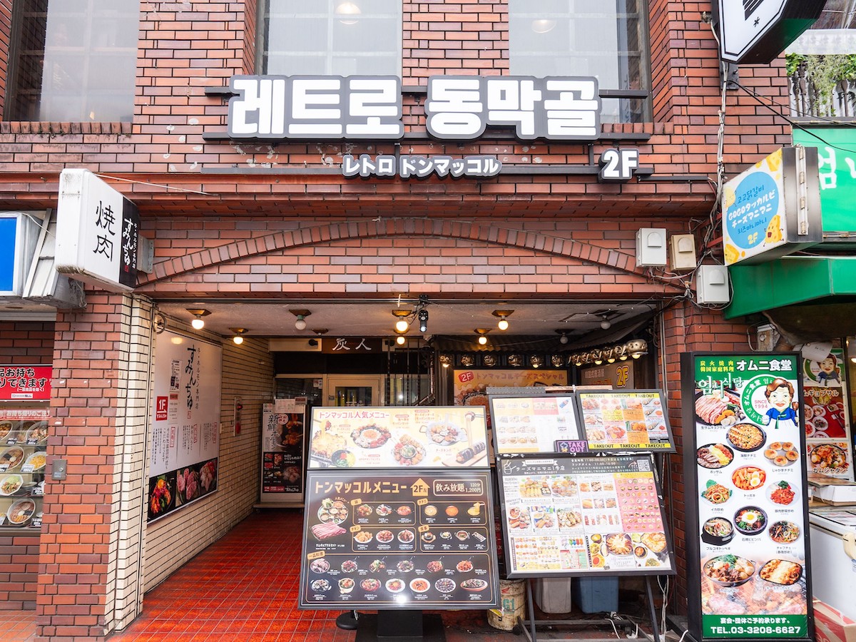 お店まではJR新大久保駅から歩いて5分ほど。大久保通りを明治通り方面へと進み、レンガ造りの建物が見えてきたらお店はすぐそこ! 外階段を上って2階の入口に向かいましょう。ランチタイムは行列となるため、オープン直後の来店が狙い目です。