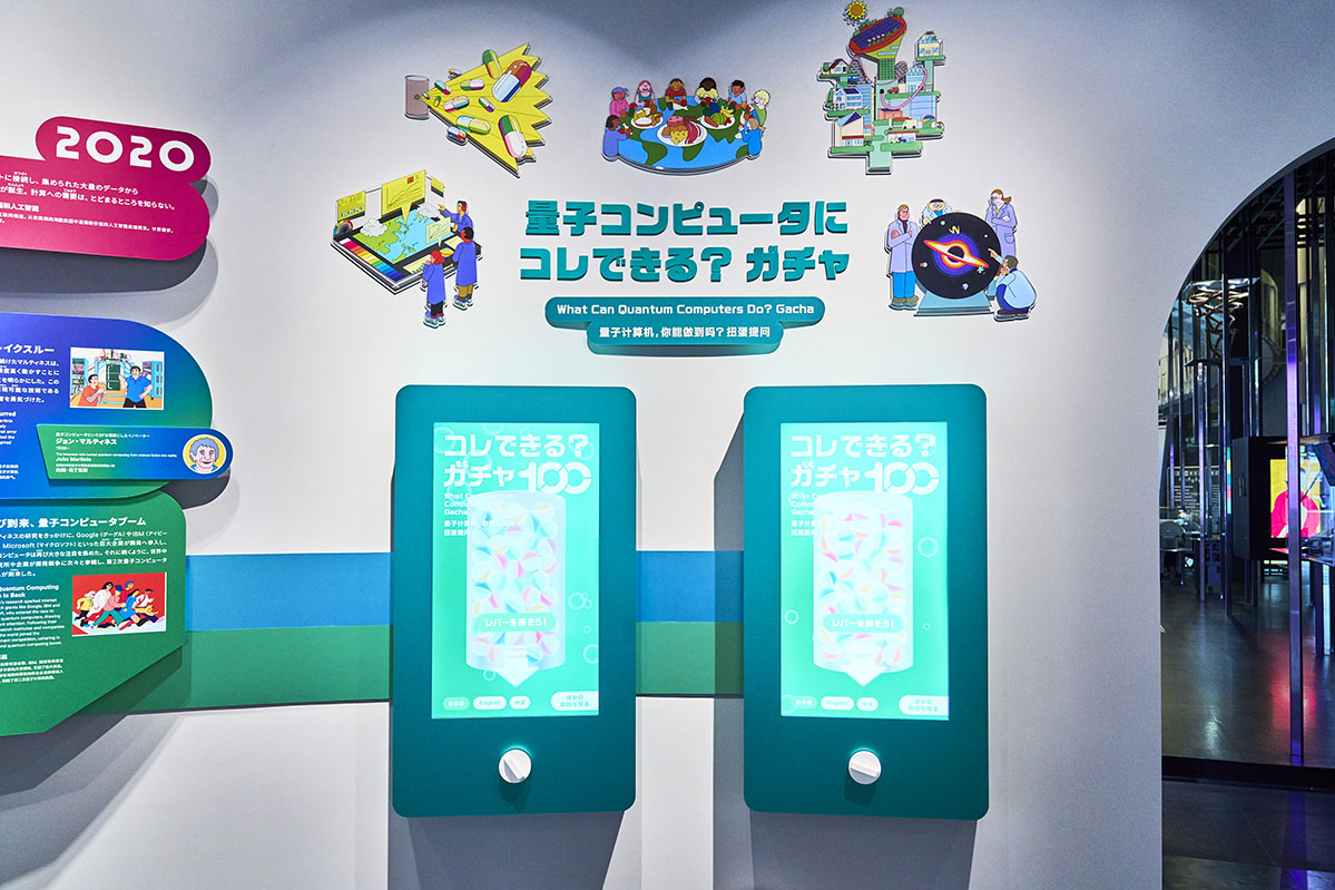 レバーをガチャガチャのように回すことができ、回したら画面に質問と専門家のアンサーが表示されます。私が回したときは「(量子コンピュータは)われわれにも買える?だいたいおいくら万円なのかな?」という質問が出て、「小さいものなら手がとどく価格になりつつあります」というアンサーでした。細かい解説もあり、読んでいくと面白いです。ぜひ回してみてくださいね。