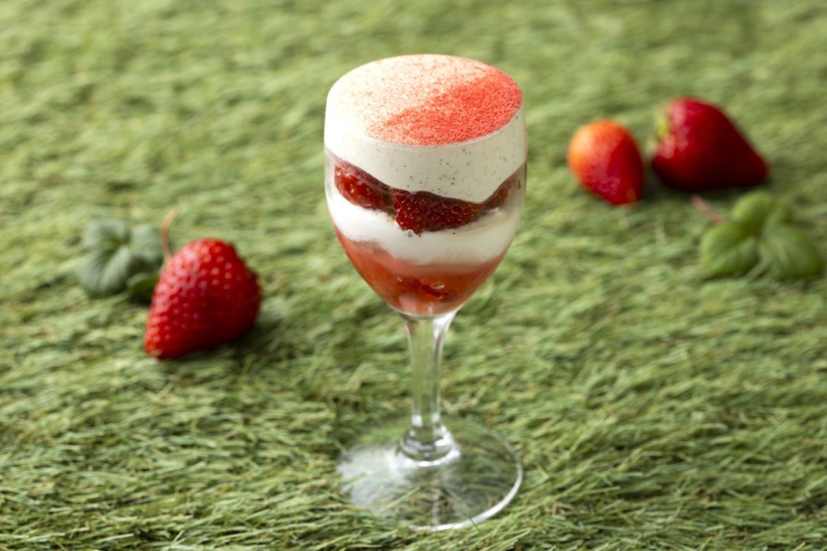 さわやかなレモンが香るイチゴジュレに、ヨーグルトシャンティ、アールグレイ風味のスポンジとクリームを重ねた、初夏にぴったりのミニパフェです。