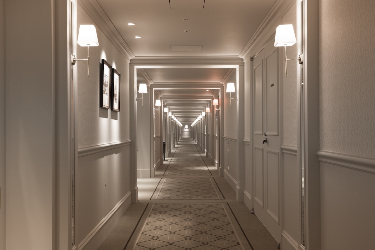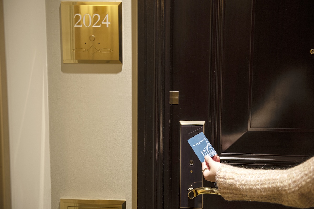 フロントでチェックインをすると、ダークグリーンの素敵なユニフォーム に身を包んだゲストリレーションズのスタッフが客室へと案内してくれます。もちろんチェックインの前にホテルで荷物を預かっておいてもらうのもOK。