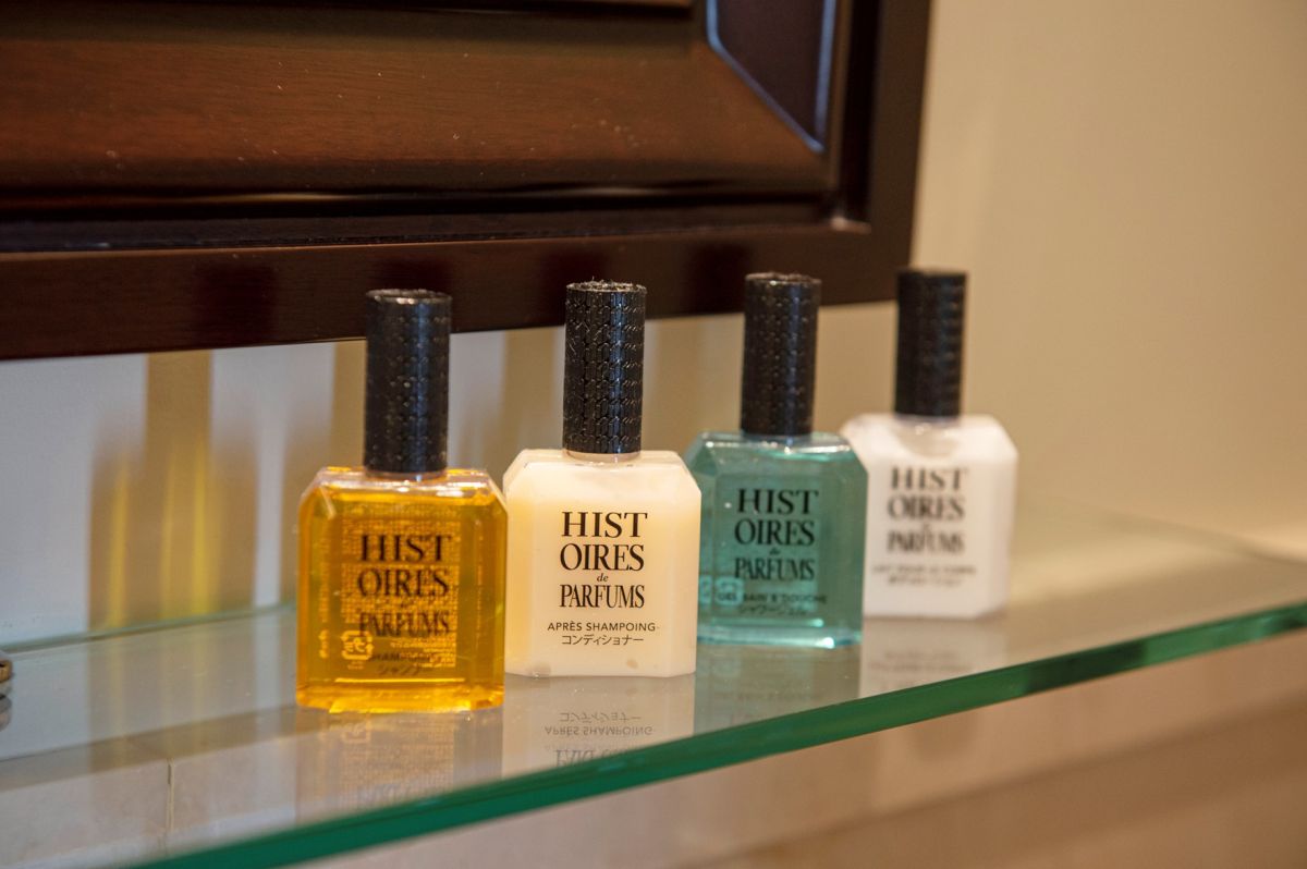 バスアメニティはフランスのフレグランスブランド「HISTOIRES de PARFUMS」と開発したオリジナルで、ホテルの創業年を冠した「Est.1915」。「LIBERTYルーム」だけでなく、スイートルーム以外の全客室に用意されています。
