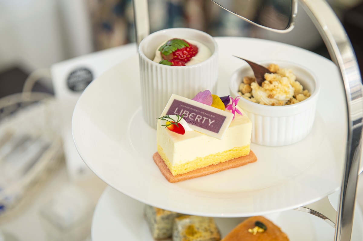 「LIBERTYルーム」では、このお部屋でしか利用できない「LIBERTYアフタヌーンティー」を楽しむことができるんです! ホテルオリジナルの3段トレイに1人前ずつ飾られたスイーツ&セイボリーは、このアフタヌーンティー専用のメニュー。スコーンにはジャムとクロテッドクリームが添えられた本格的なイギリス式です。