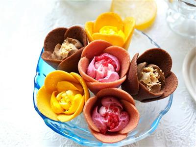 チューリップとローズをモチーフにしたスイーツを展開する店。同店の代表商品はチューリップとローズがひとつになった「チューリップローズ」。繊細なラングドシャクッキーで作られたチューリップのなかに、とろけるショコラクリームのローズが咲いた華やかなスイーツ。まるで黄金色のチューリップ、「チューリップローズフィナンシェ」も登場し、バリエーションも豊富に。