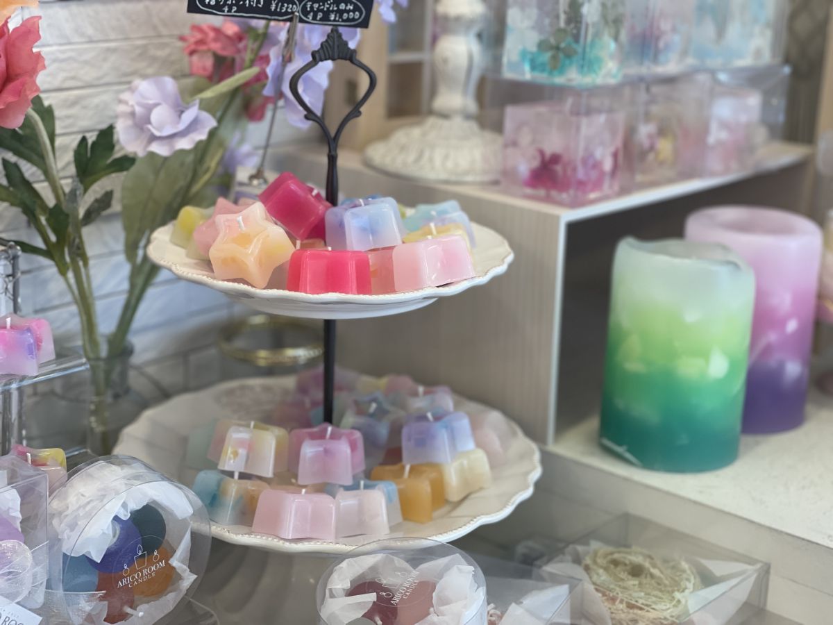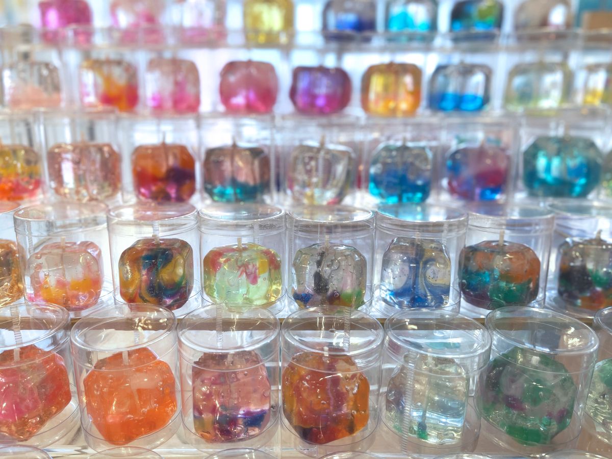 店内に一歩踏み入れると、カラフルなキャンドルがずらりと並ぶかわいらしい空間が迎えてくれます。