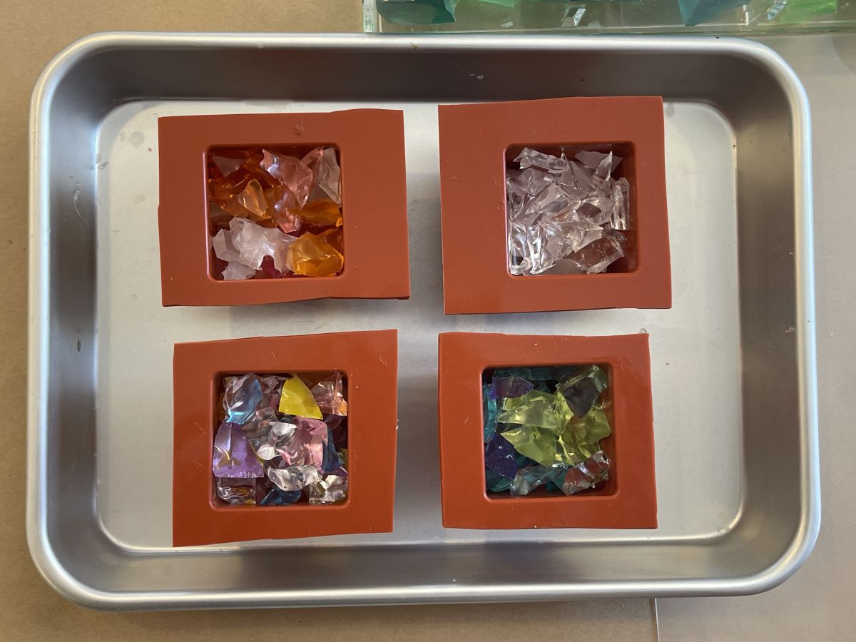 取り出してみると、気泡が入っていたり少し欠けていたりもするけど、そこにも光が反射してかわいい! 色の配分や配置もうまくいっていたのでとてもうれしくなりました。