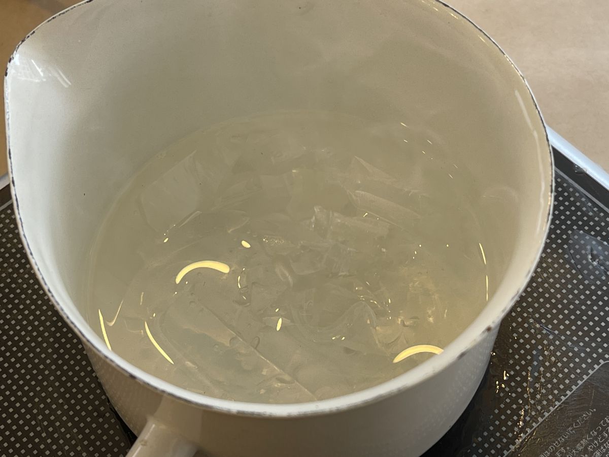 IHで熱するとみるみるうちに溶けていきます。最初は粘り気のあるトロトロとした状態に。