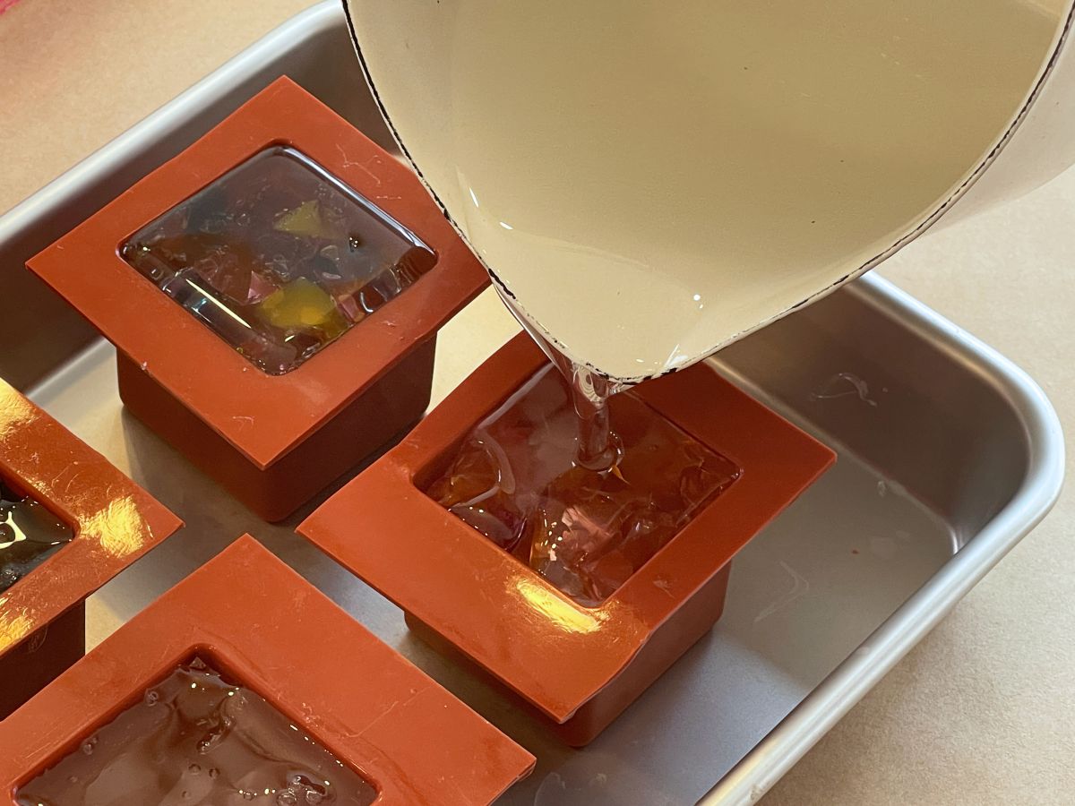 サラサラになったクリアワックスを先ほどの型に流し込みます。
