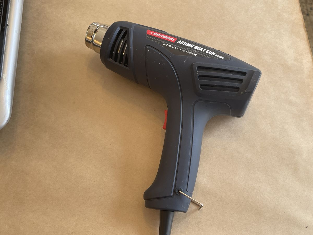 4つそれぞれの型にワックスを流し込んだら、次に登場するのはヒートガン。熱風を送るための工具です。