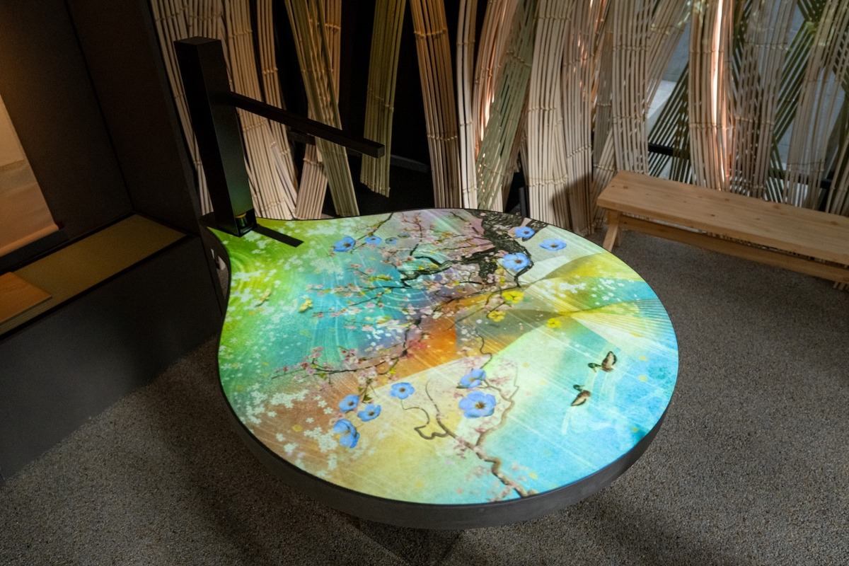 さらに、「NAKED」のアートテクノロジーが加わることで、空間は五感で楽しむ“体験型アート”へと昇華します。水の流れや光のうつろいを映し出すプロジェクションやインスタレーションは、時間帯、天候、季節によって表情を変えます。テーブルにそっと手を置くと、波紋が広がり、やがてその場所から花びらが舞いはじめます。
