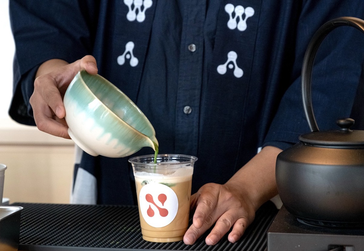 ほろ苦いエスプレッソコーヒーと京都産牛乳のまろやかな甘みのなかに、老舗茶舗の抹茶の上品な味わいが際立ちます。
