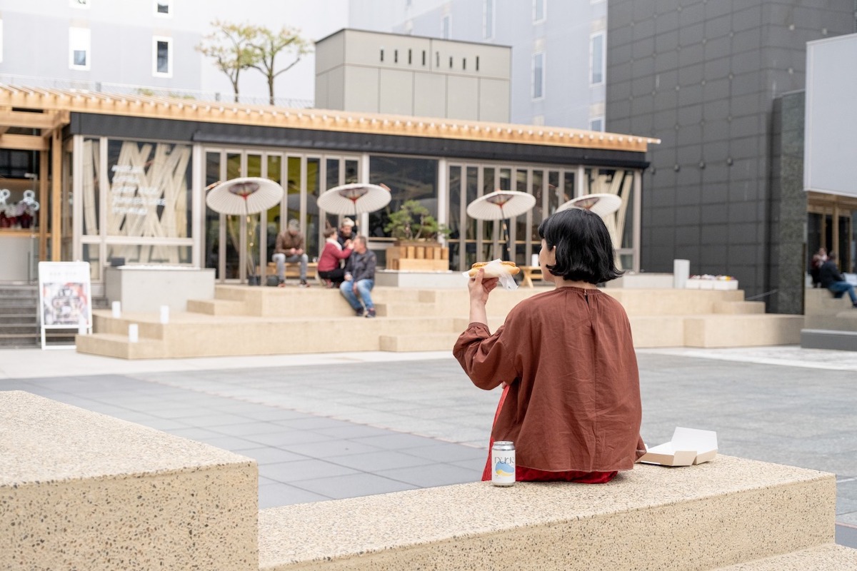 「NIWA」で購入したドリンクやフードは、「東広場」でも楽しむことができます。清々しい風を感じながらの飲食は、屋内では味わえない開放感があり、天候のいい日にオススメ。23時まで営業しているので、夜カフェとして利用できるのもうれしいポイントです。