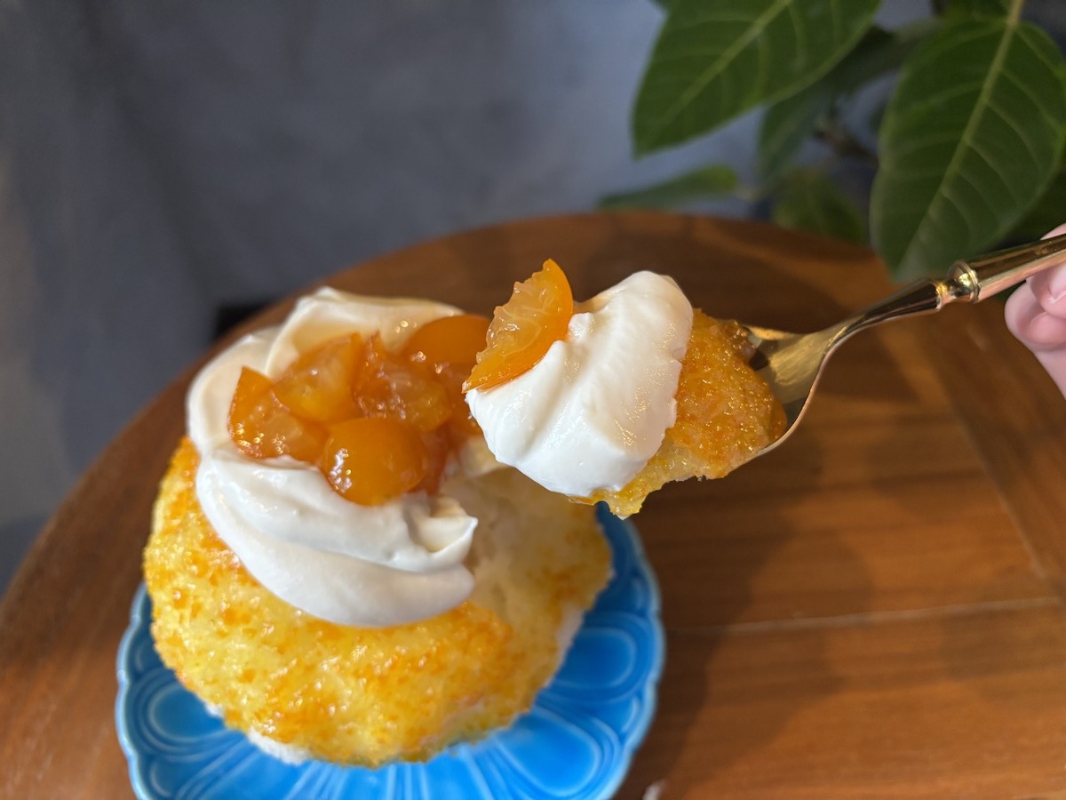 どのあたりが“京都ならでは”なのかというと、上にのっているクリームが酒粕クリームなのです。粕汁などでおなじみのあの酒粕です。京都は伏見を中心に酒蔵が多く、地酒は京都の名産品のひとつ。クリームと合わせても風味が消えず、存在感があります。