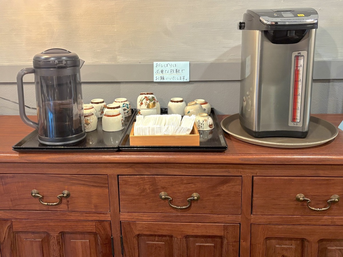 温かいお茶とお水はフリー。かき氷を2種類、3種類と食べたい人にはありがたいサービスですね。