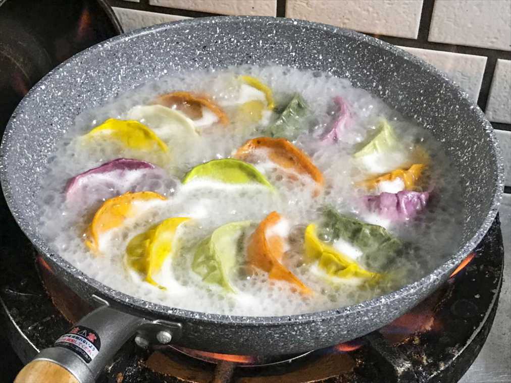 皮から餡まですべて手作り!カラフル餃子で目からも癒しを