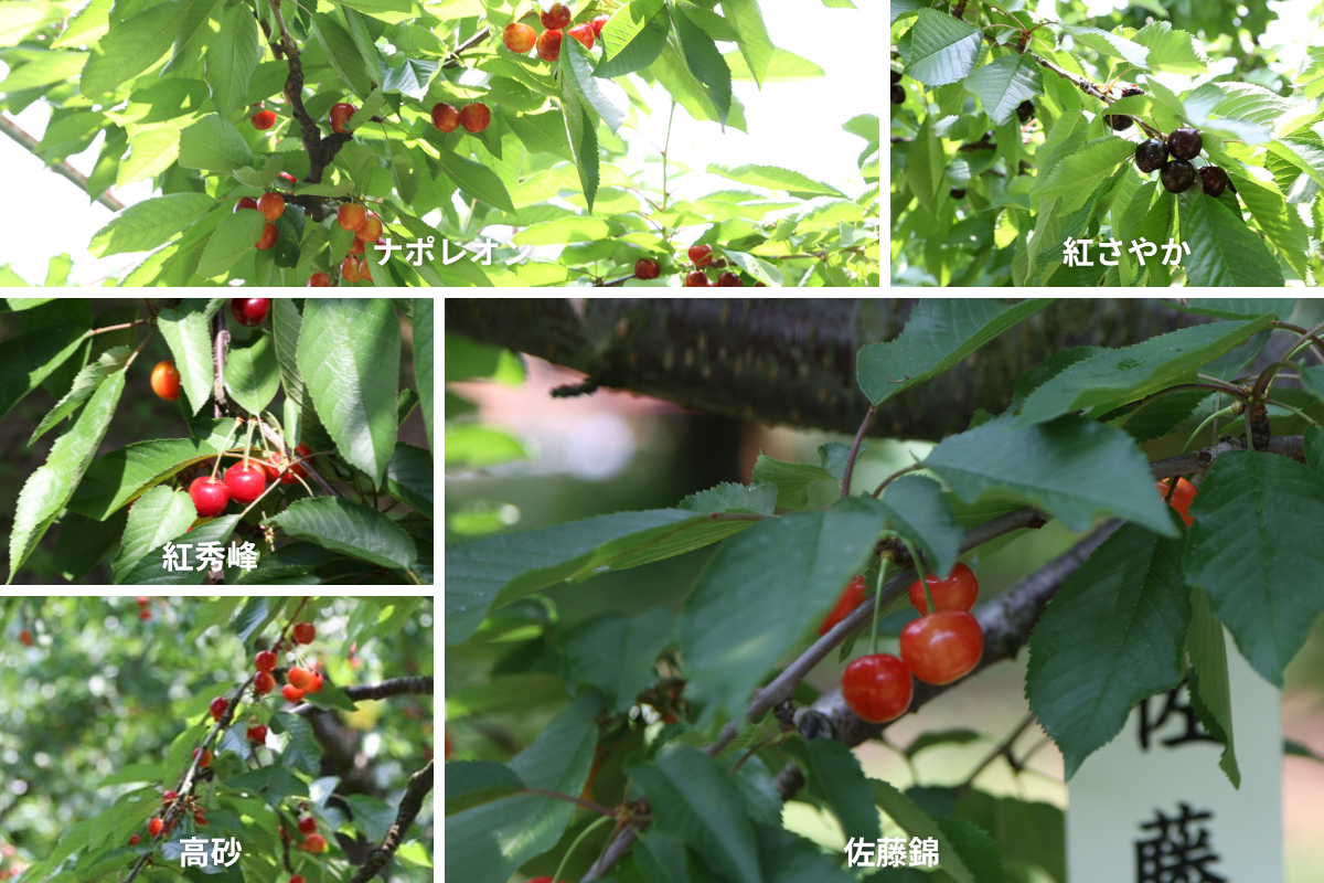 国内で最も多く生産され、ハリがありながらやわらかな食感の「佐藤錦」、酸味が強くジューシーで濃紅色~紫黒色が特徴の「紅さやか」、そして寒河江市で生まれた品種でもあり大粒で果肉がしっかりとした「紅秀峰(べにしゅうほう)」など、いろいろな品種を食べ比べできるのがうれしいところ♪
