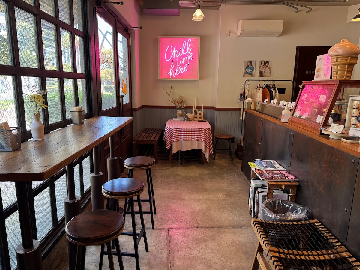 店内は、インスピレーションを受けたポートランドのアイスクリーム屋さんの雰囲気をイメージ。クラフト職人が多かったポートランドには内装にこだわったお店が多く、そんなポートランドの空気を少しでも感じてもらえたら、と空間づくりにも力を入れているそう。