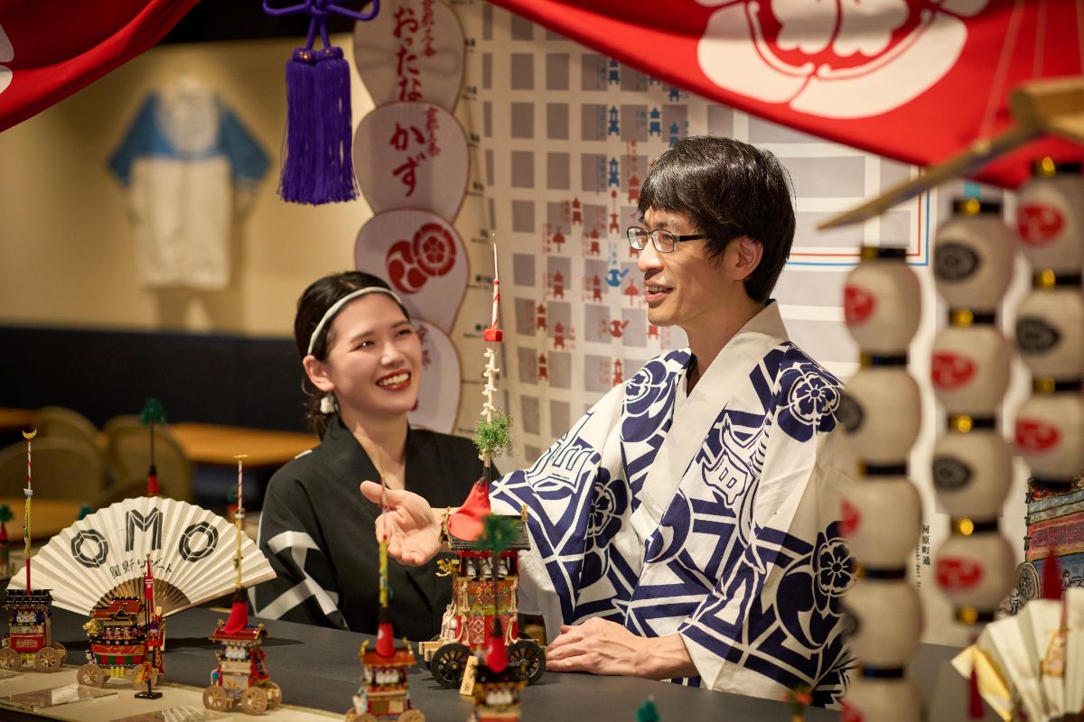 「宵のおも祭いろは」期間中は、祇園祭について知り尽くしたスタッフ“祇園祭マイスター”が両ホテルに登場。より深く祇園祭について知りたい方向けの講座を開催するほか、ふらっと訪れた人にも祇園祭の基礎的な部分や、その日に行われる祇園祭イベントなどをOMOベースにて随時紹介してくれます。
