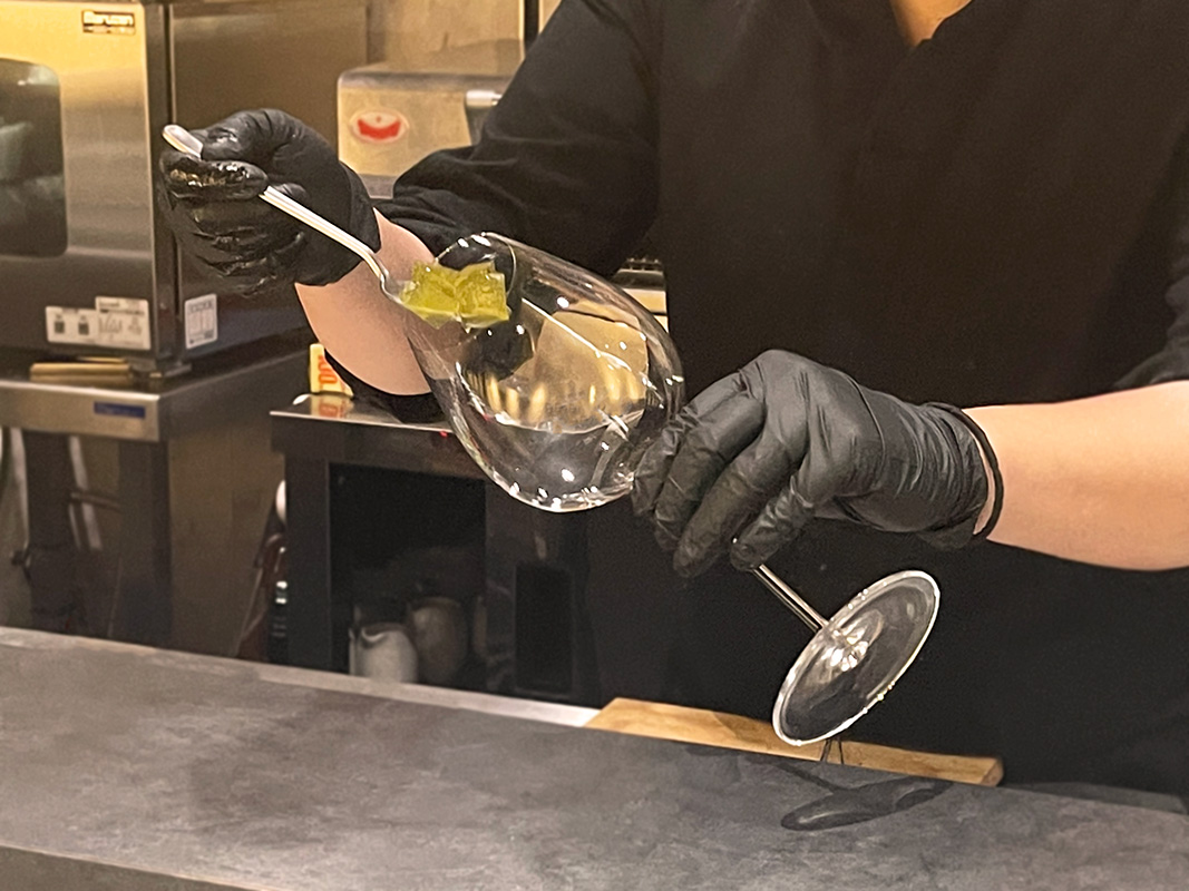 艶やかなグラスに具材が盛られていく様子にうっとり。徐々に仕上がっていく姿から目が離せません!