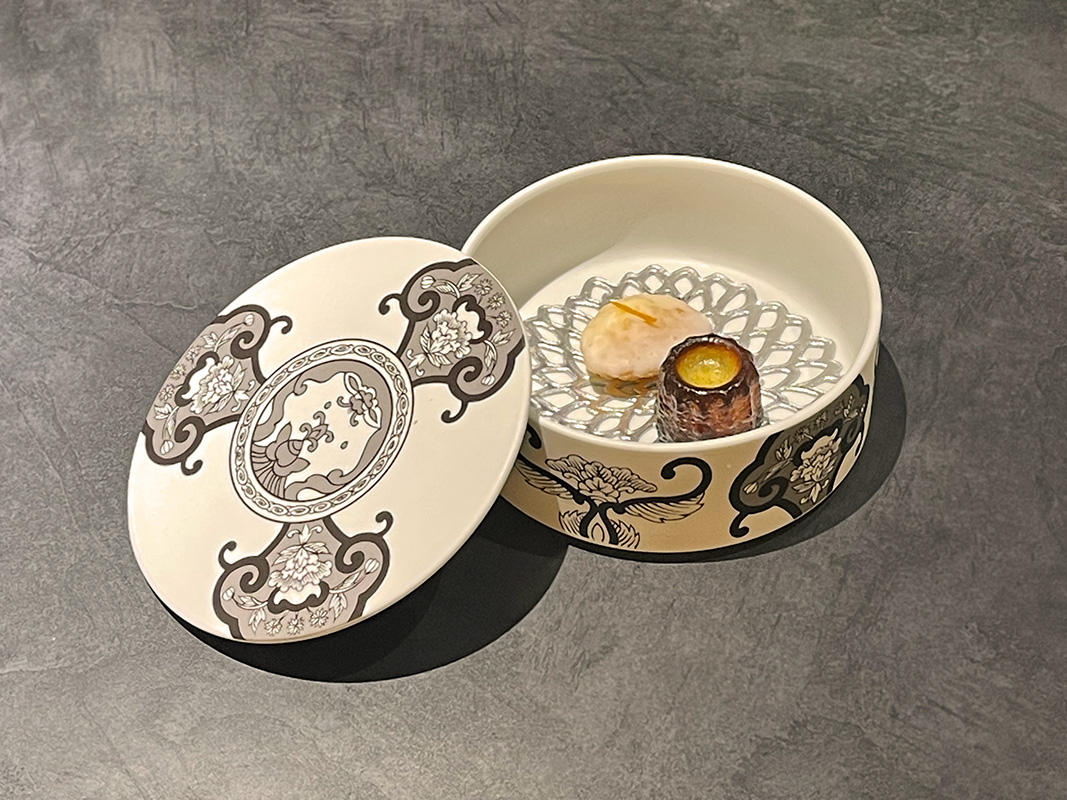 高級感のあるエレガントな模様入りのお重は、ふたを開けるときにワクワク感があり特別な体験をしている気分に!